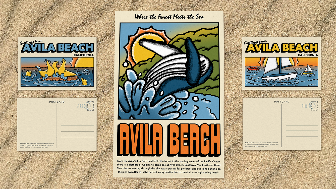 I researched and documented a place in the San Luis Obispo area (Avila Beach) and created an informational and promotional campaign targeted towards tourists. I established design guidelines and applied them to various deliverables to provide an engaging and memorable snapshot of Avila Beach.